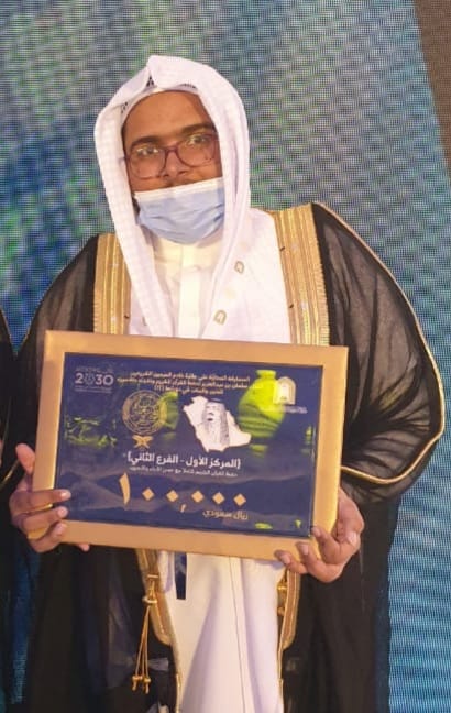 حقق الطالب محمد بن إبراهيم علي الفقيه ، من طلاب جمعية سمو المركز الأول على مستوى منطقة مكة المكرمة في الفرع الثاني (حفظ القرآن كاملاً) في مسابقة خادم الحرمين الشريفين الملك سلمان بن عبدالعزيز آل سعود، لحفظ القرآن الكريم وتلاوته وتفسيره للبنين والبنات للعام 1441.